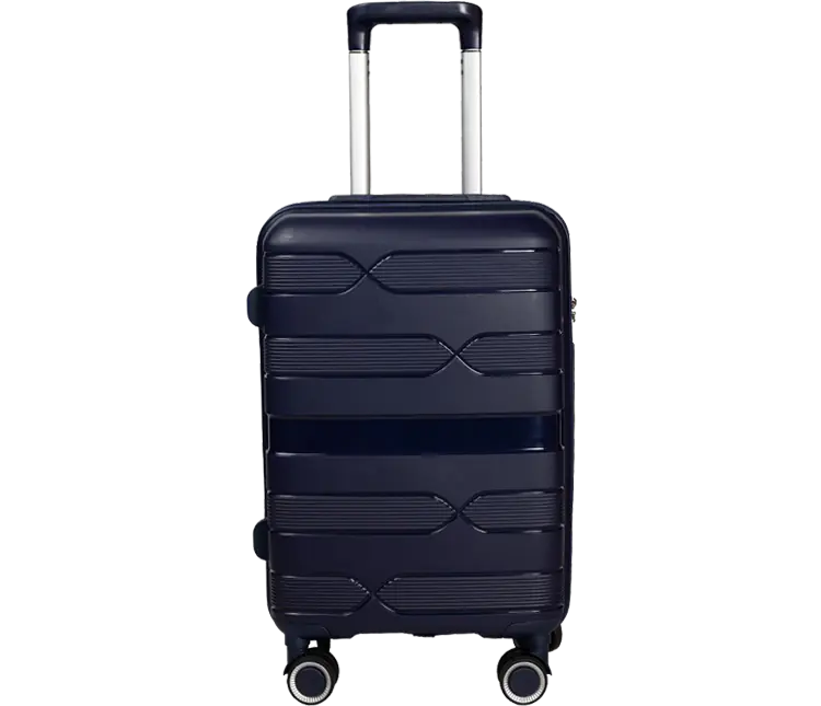 Mala de viagem com as medidas 38x22x55cm azul, material polipropileno, forro em polyester, com 4 rodas e capacidade de 35L