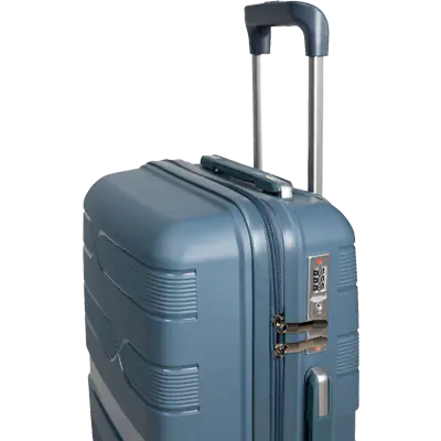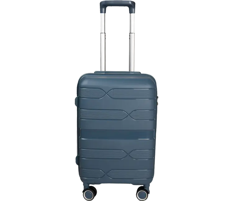 Mala de viagem com as medidas 38x22x55cm azul petróleo, material polipropileno, forro em polyester, com 4 rodas e capacidade de 35L